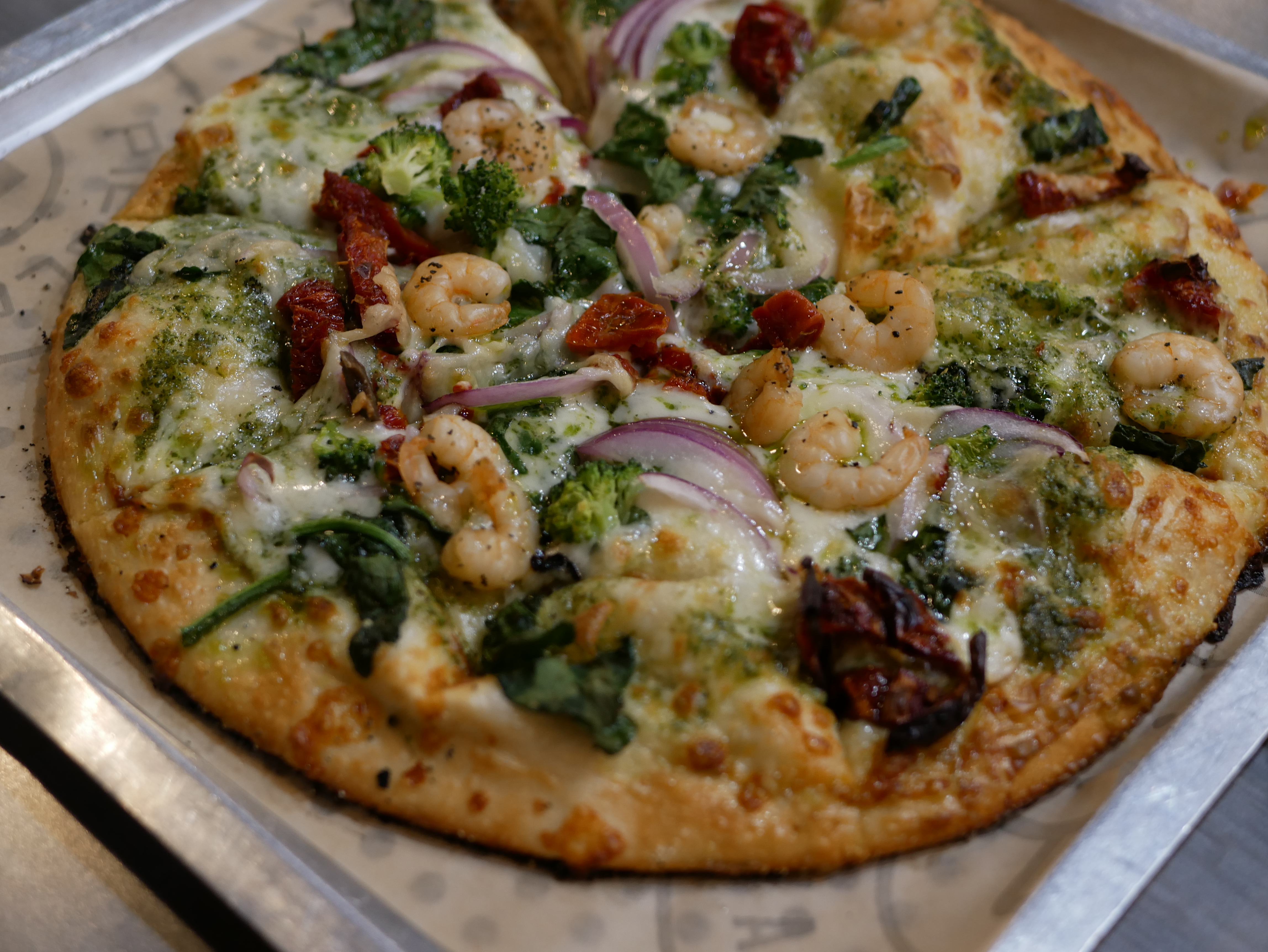 오리지널 도우에 바질페스토, 쉬림프, 시금치 등등 많이 때려넣었다.