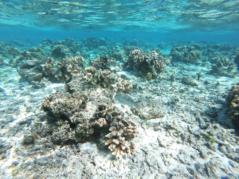 산호가 많아 오리발은 만신창이가 되었지만...