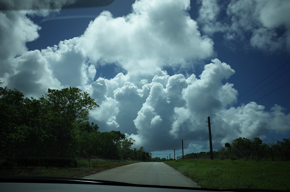 근데 도착하자마자 차에서 내려 하늘을 보니 무시무시한 먹구름이....!