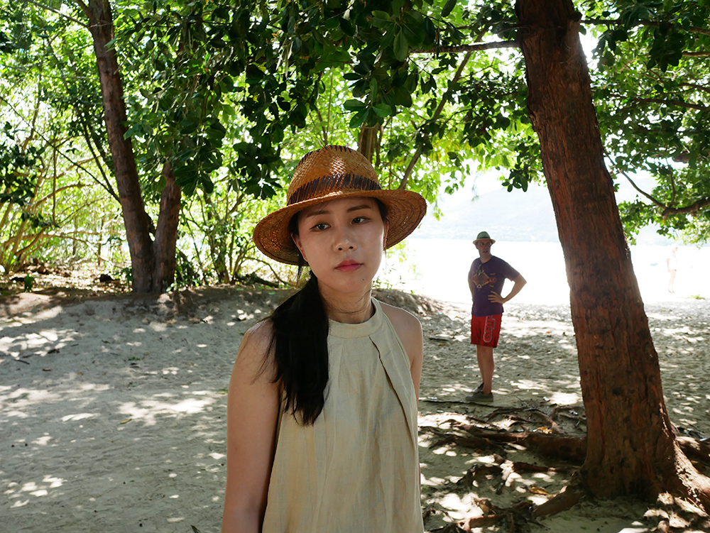 해변에서 조금 멀리 그늘이 있긴 했지만